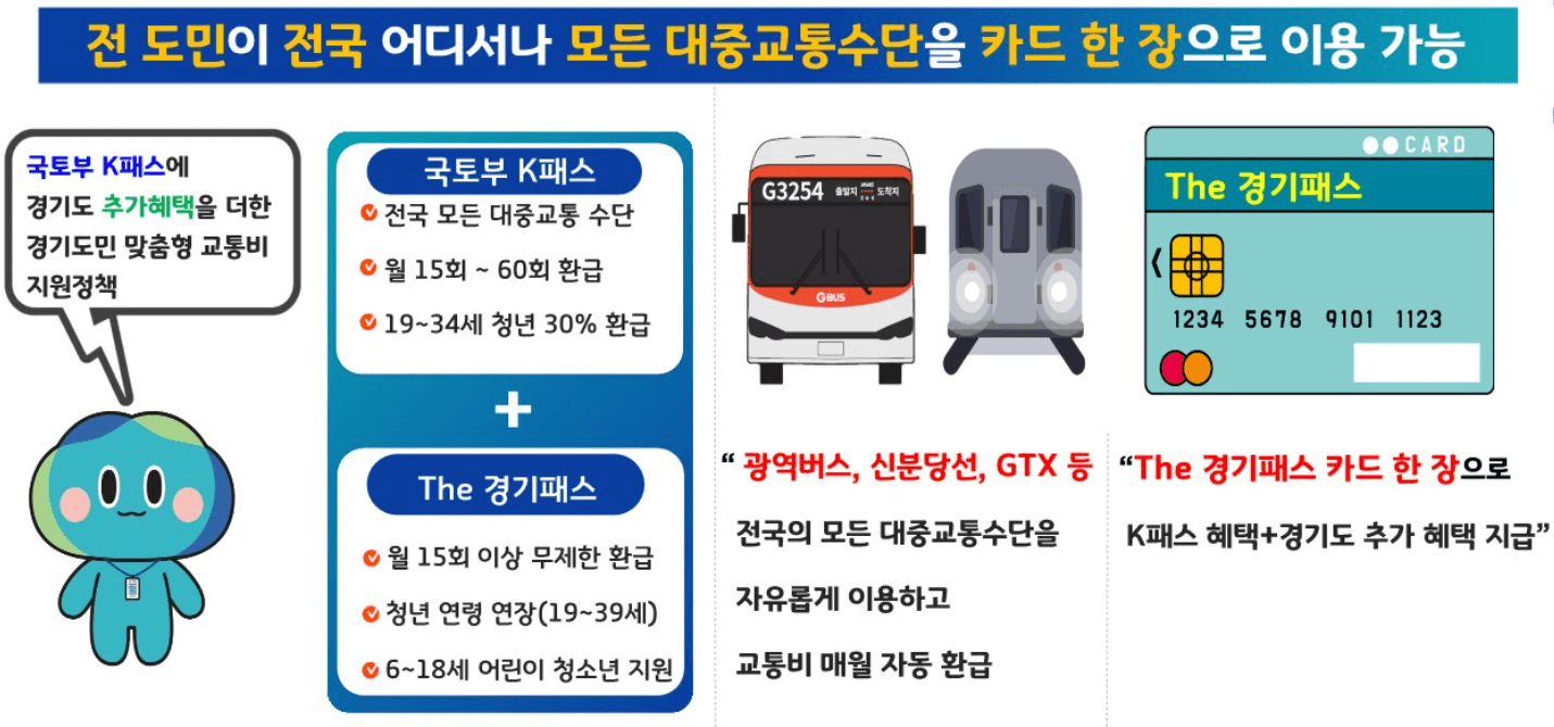 최대 월 60회의 환급 제한을 무제한 환급으로, 청년을 39세까지 나이제한을 늘려 20% 에서 30%까지 환급 가능해졌으며, 광역버스 및 수도권 광역급행철도 (GTX)를 포함 서울시에서 운영 예정인 기후동행카드에서 적용되지 않는 신분당선, 인천 1-2호선, 용인, 의정부, 경강선까지 다양한 교통수단을 이용할 수 있습니다.